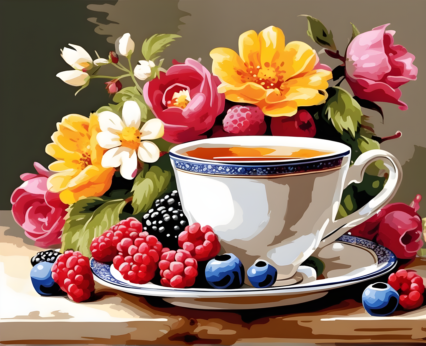 Berries, Flowers & Cup of Tea (1) - Van-Go Paint-By-Number Kit