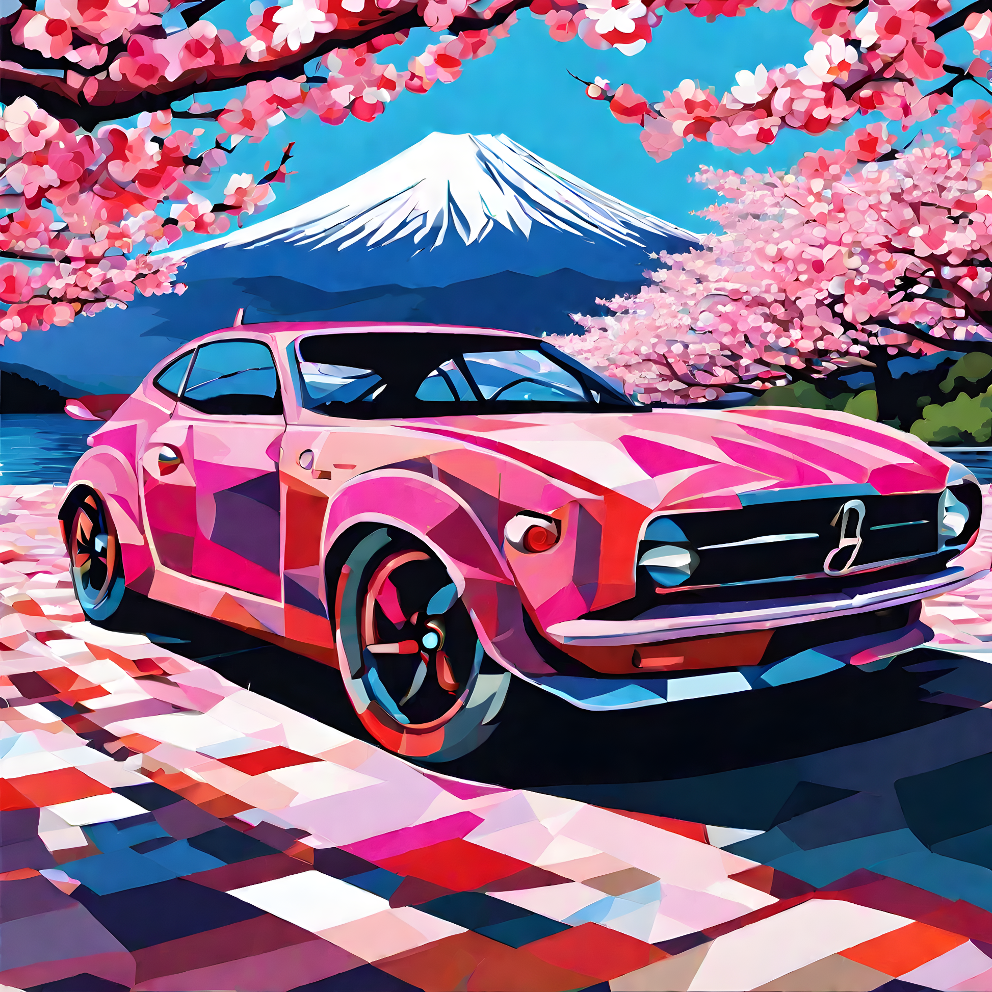 Cherry Blossom Race Car near Mount Fuji - Van-Go Paint-By-Number Kit