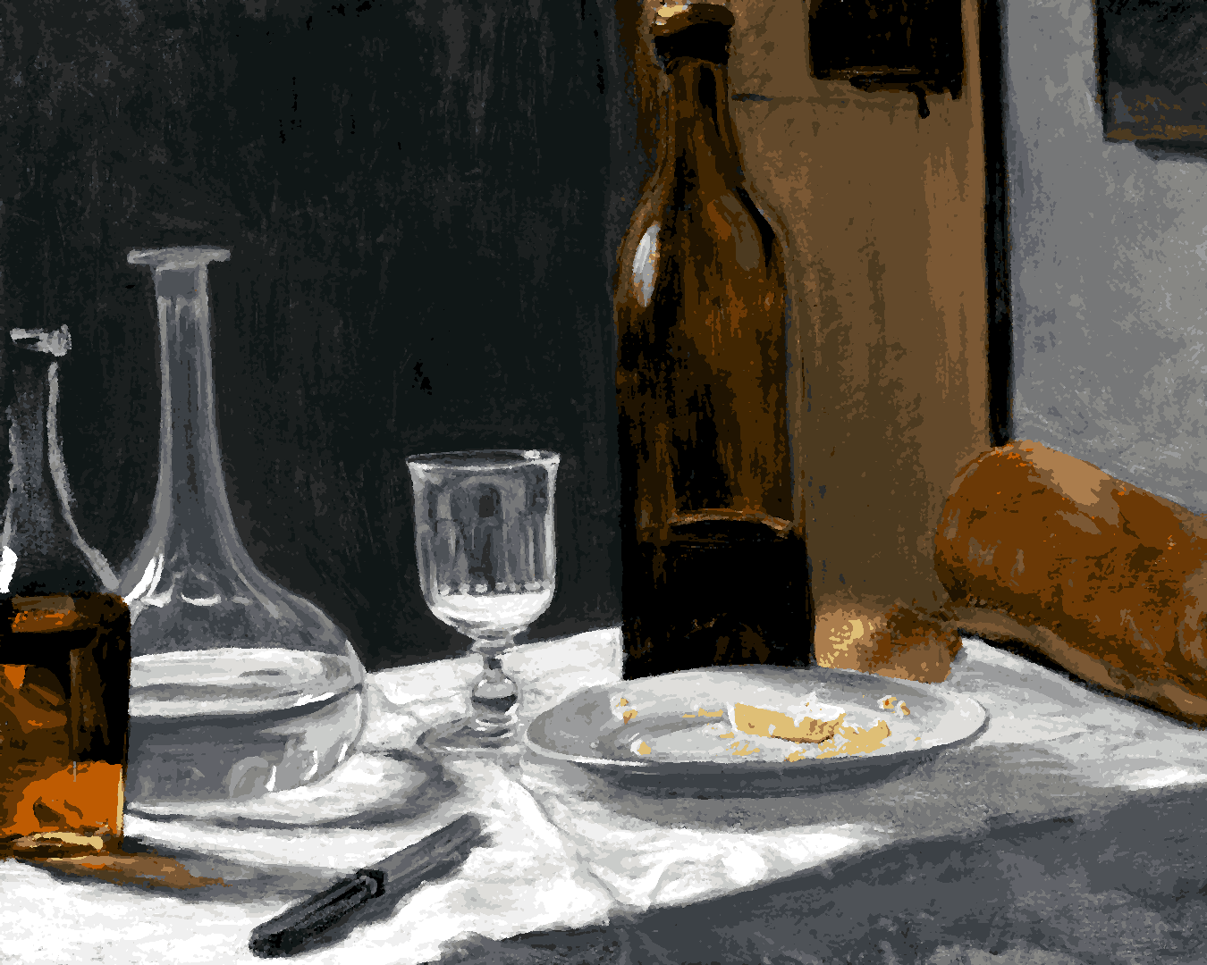 Claude Monet PD (161) - Still Life with Bottle, Carafe, Bread, and Wine - Van-Go Paint-By-Number Kit