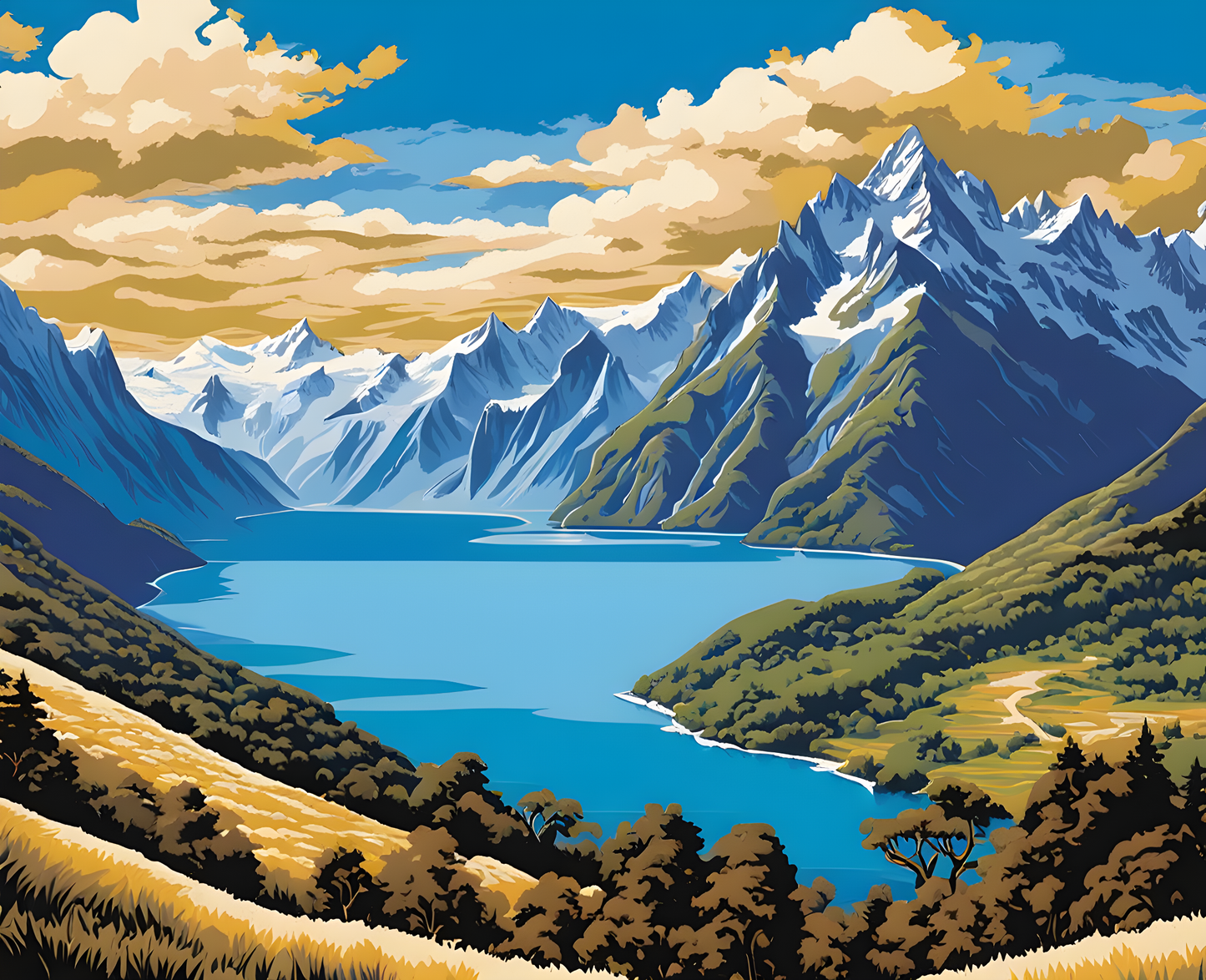 New Zealand Collection PD (5) - Blue Lakes and Tasman Glacier View - Van-Go Paint-By-Number Kit