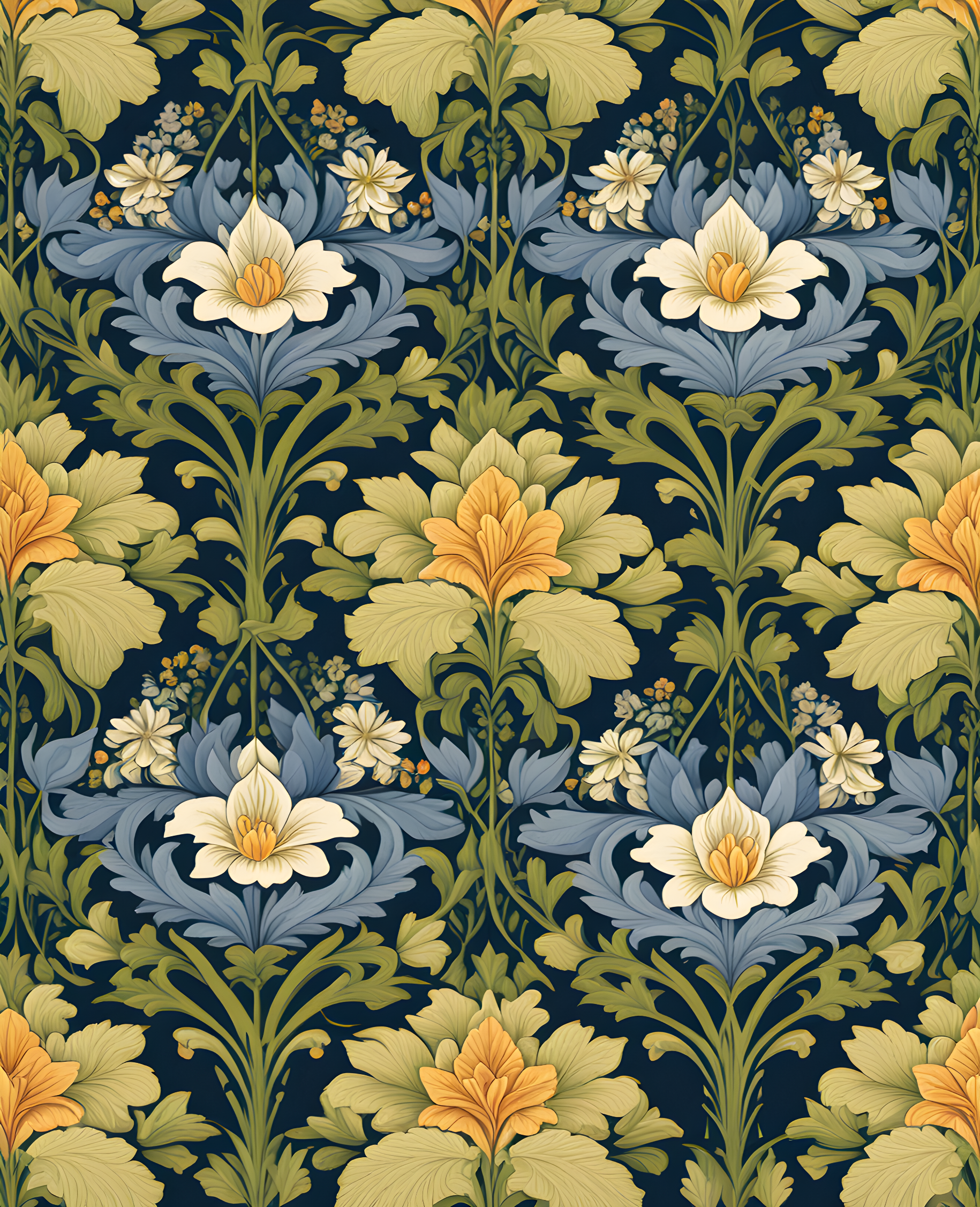 William Morris Style Collection PD (119) - Larkspur Fabric Pattern - Van-Go Paint-By-Number Kit