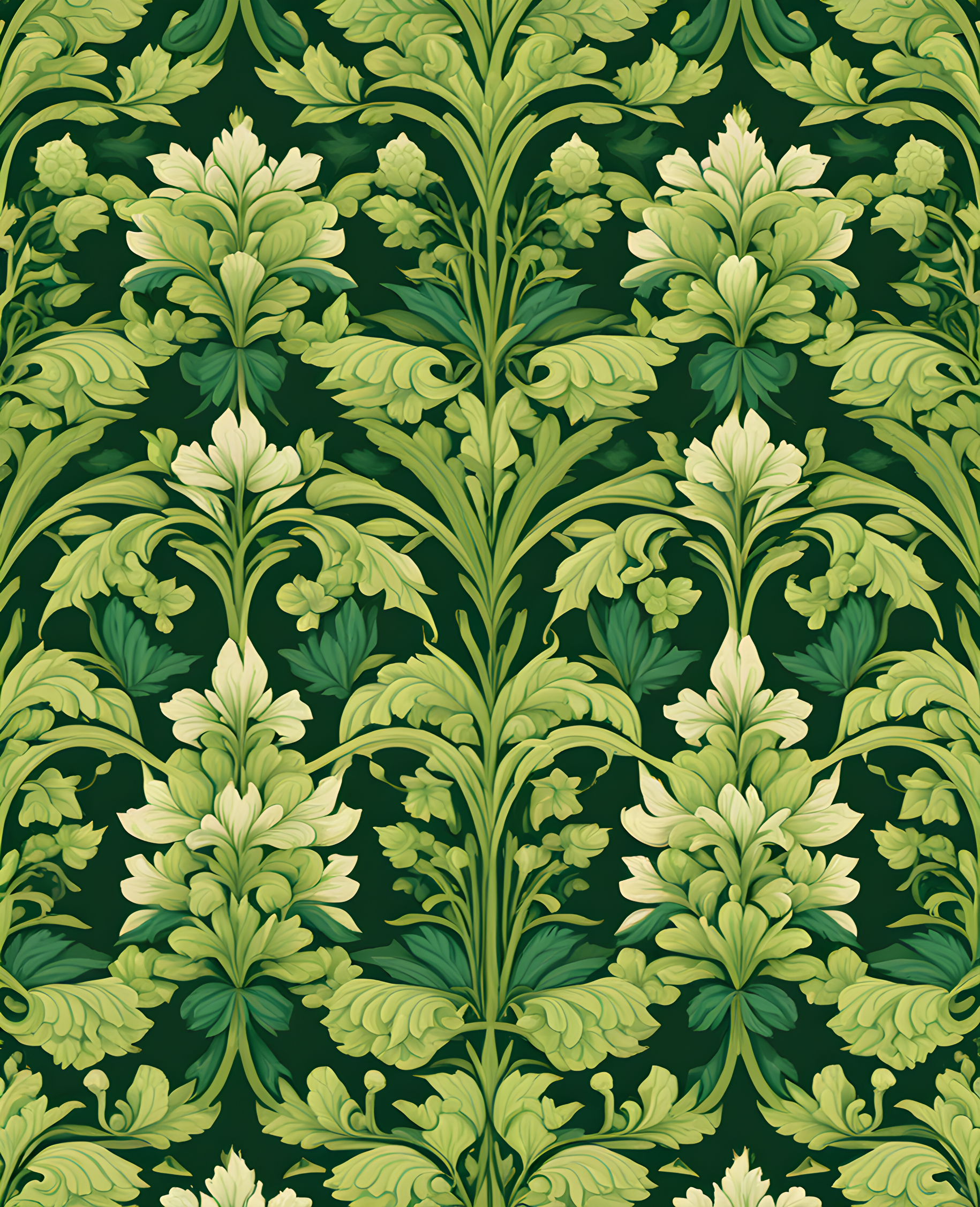William Morris Style Collection PD (146) - Sharon Shades of Green Fabric Pattern - Van-Go Paint-By-Number Kit