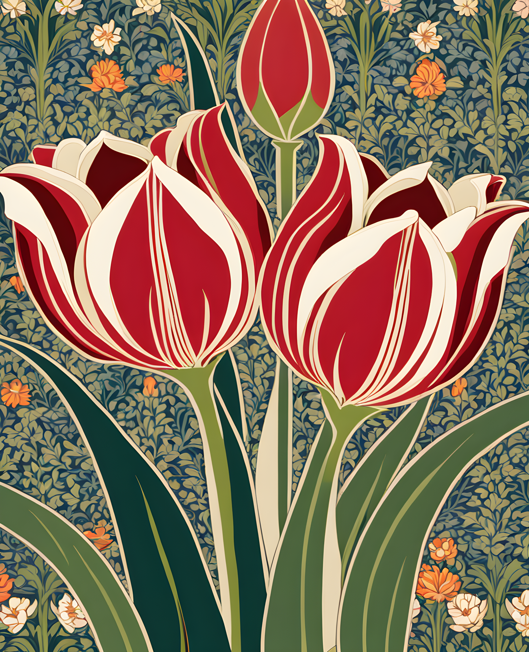 William Morris Style Collection PD (186) - Tulip and Willow- Fabric Pattern - Van-Go Paint-By-Number Kit