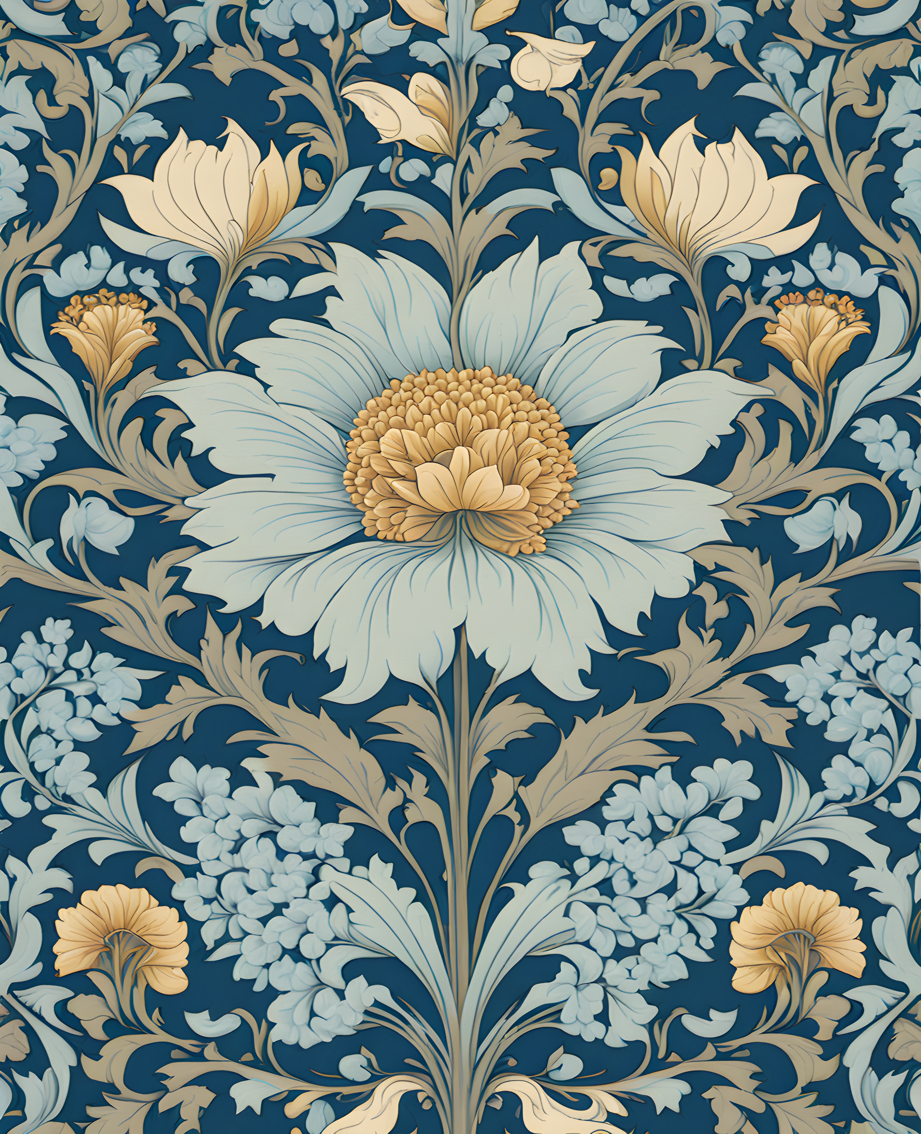 William Morris Style Collection PD (21) - Antonia Pastel Blue Pattern - Van-Go Paint-By-Number Kit