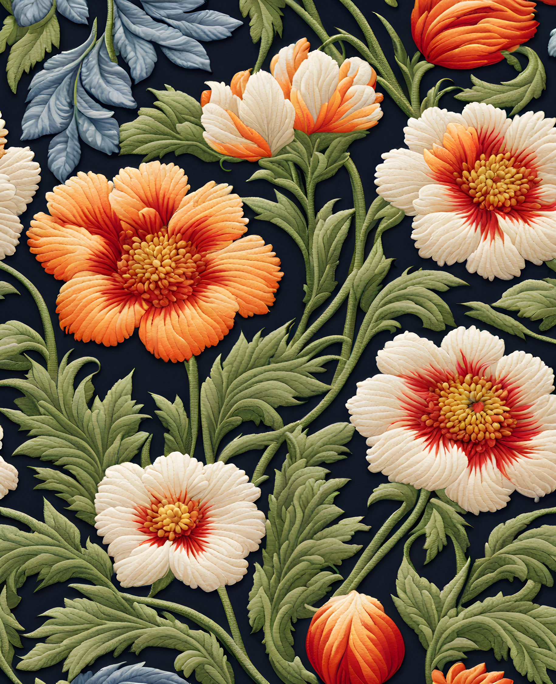 William Morris Style Collection PD (83) - Floral Embroidery Fabric Pattern - Van-Go Paint-By-Number Kit