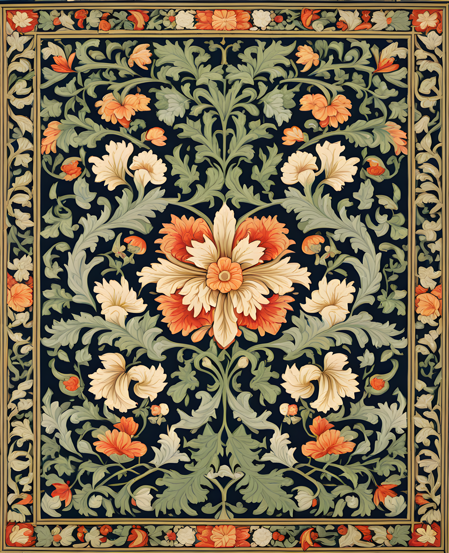 William Morris Style Collection PD (96) - Holland Park Carpet Fabric Pattern - Van-Go Paint-By-Number Kit