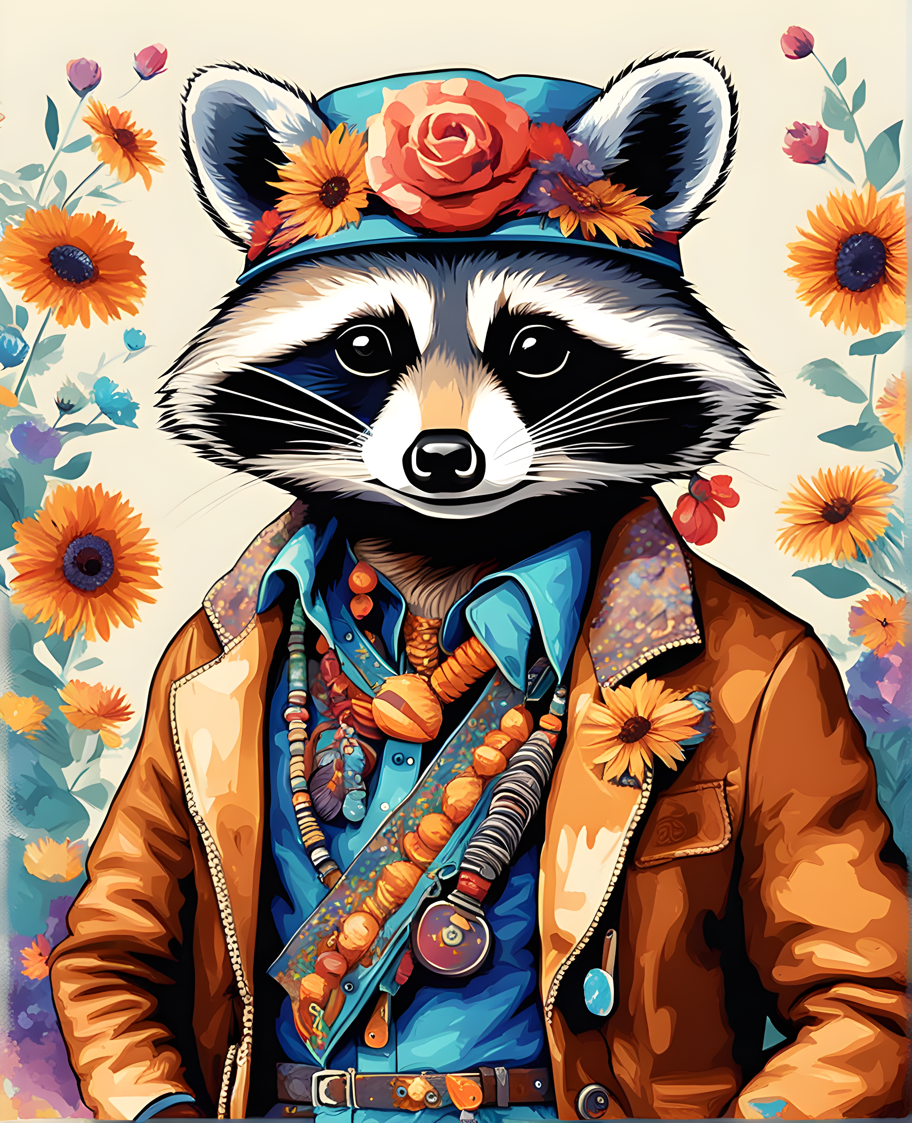 Hippie Raccoon (3) - Van-Go Paint-By-Number Kit