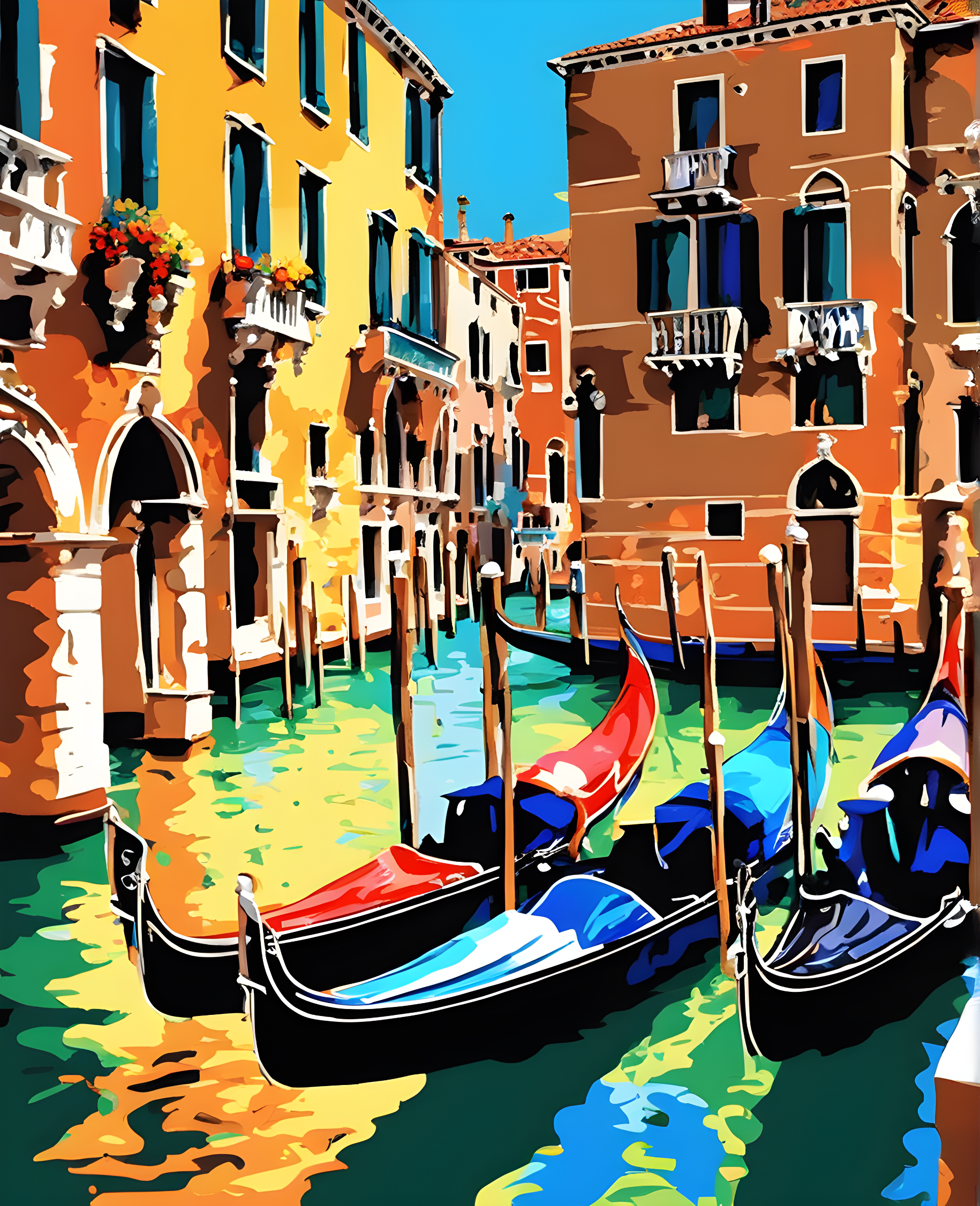 Parking Gondolas in Venetian Grand Canal (2) - Van-Go Paint-By-Number Kit