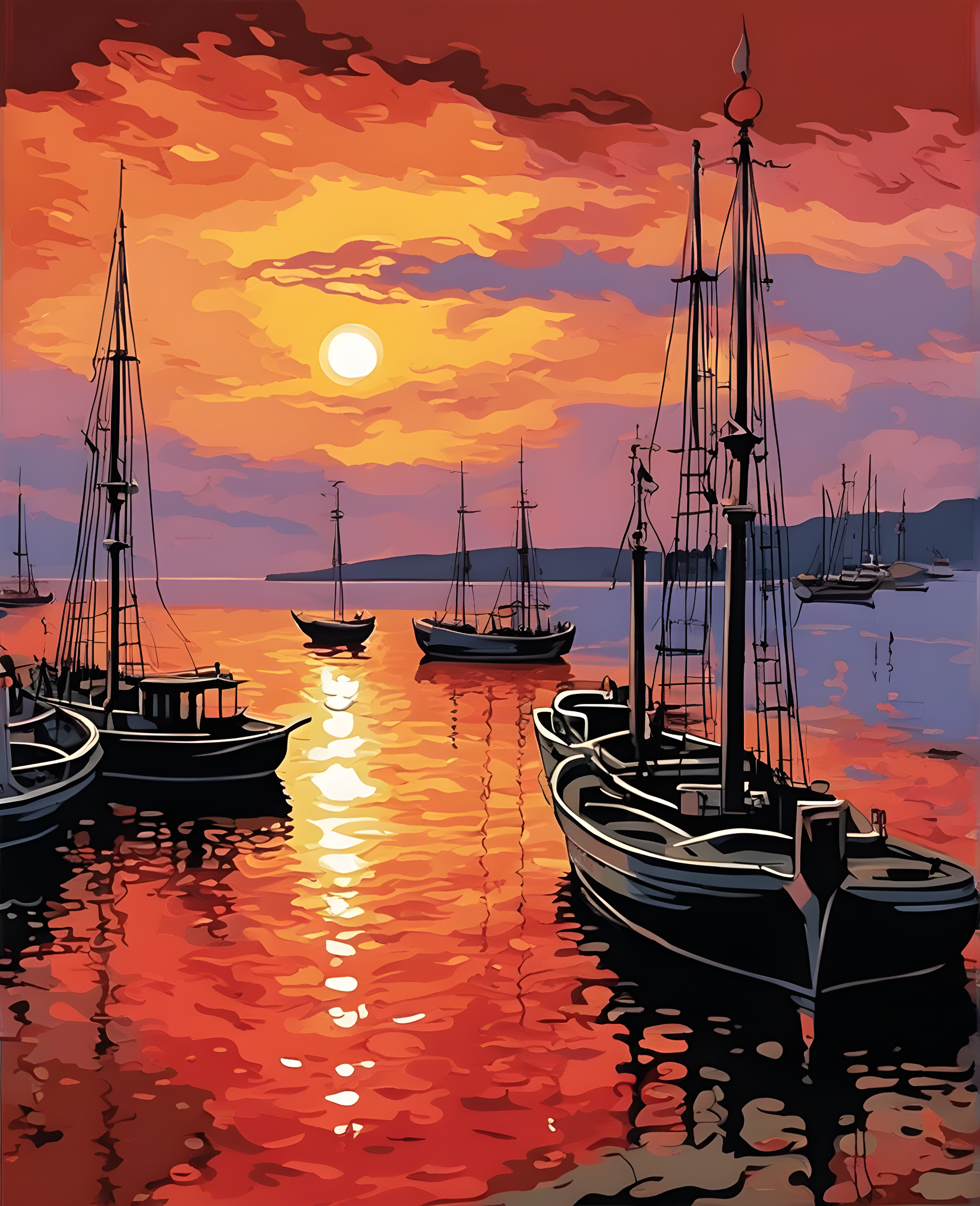 Reddish Sunset Over the Harbor (2) - Van-Go Paint-By-Number Kit