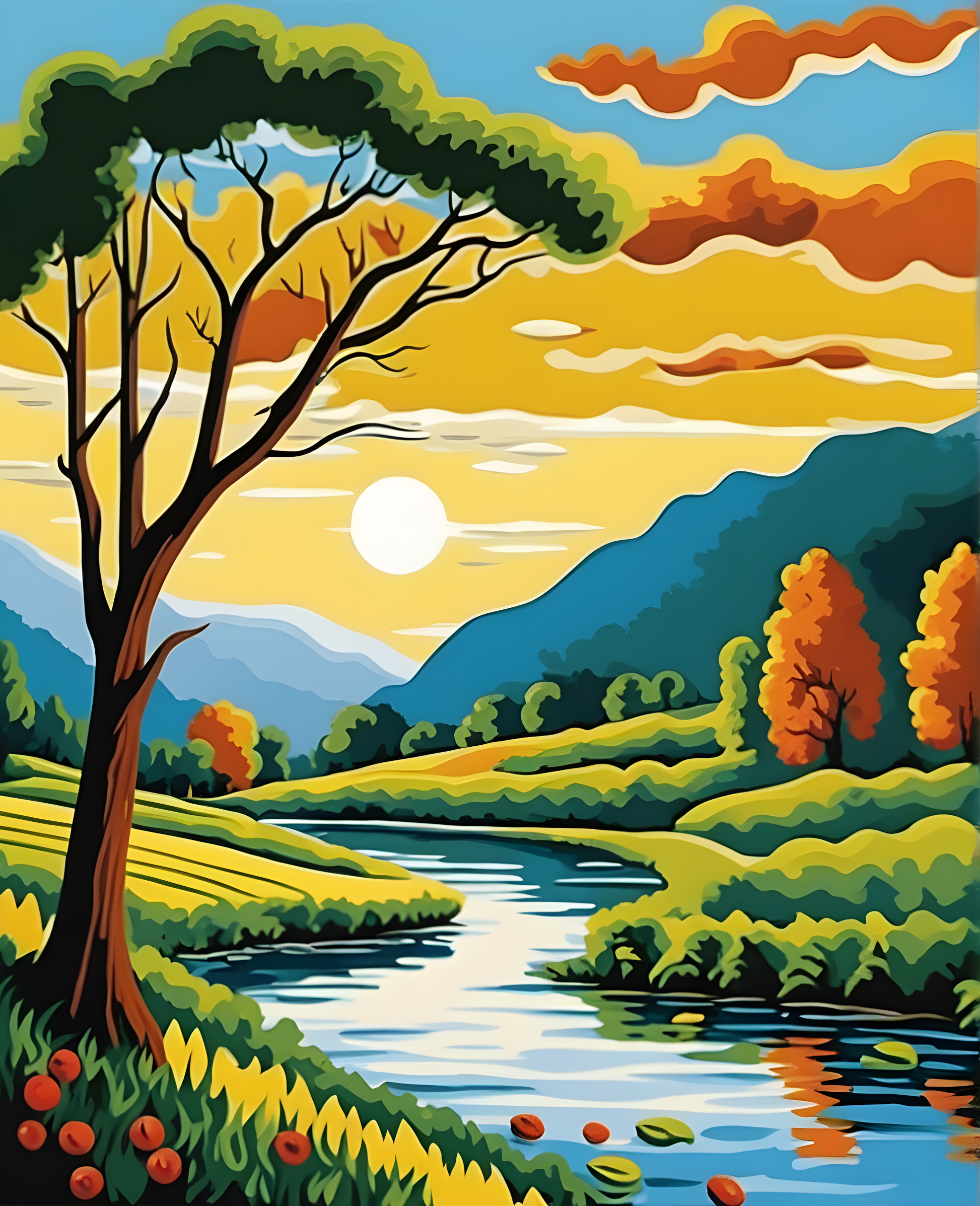 River landscape at Harvest (3) - Van-Go Paint-By-Number Kit