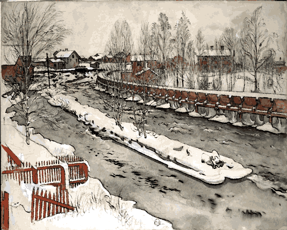 The Timber Chute, Winter Scene by Carl Larsson PD (105) - Van-Go Paint-By-Number Kit