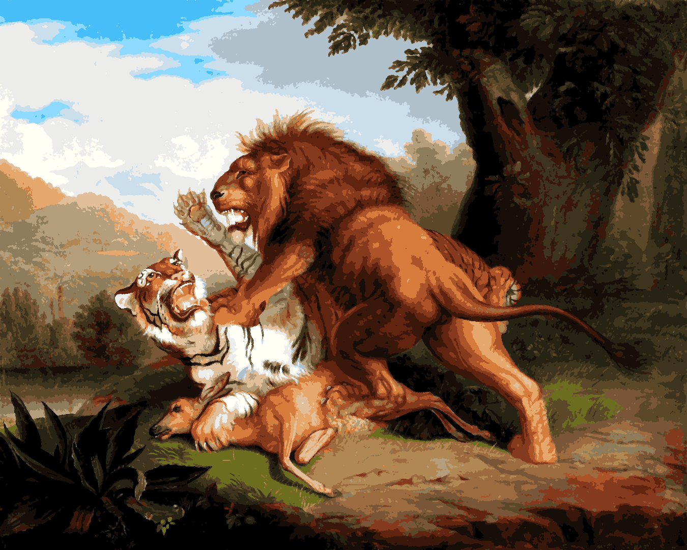 Tigers Collection PD (14) - A Tiger and a Lion fight over a Fawn by Johann Wenzel Peter - Van-Go Paint-By-Number Kit