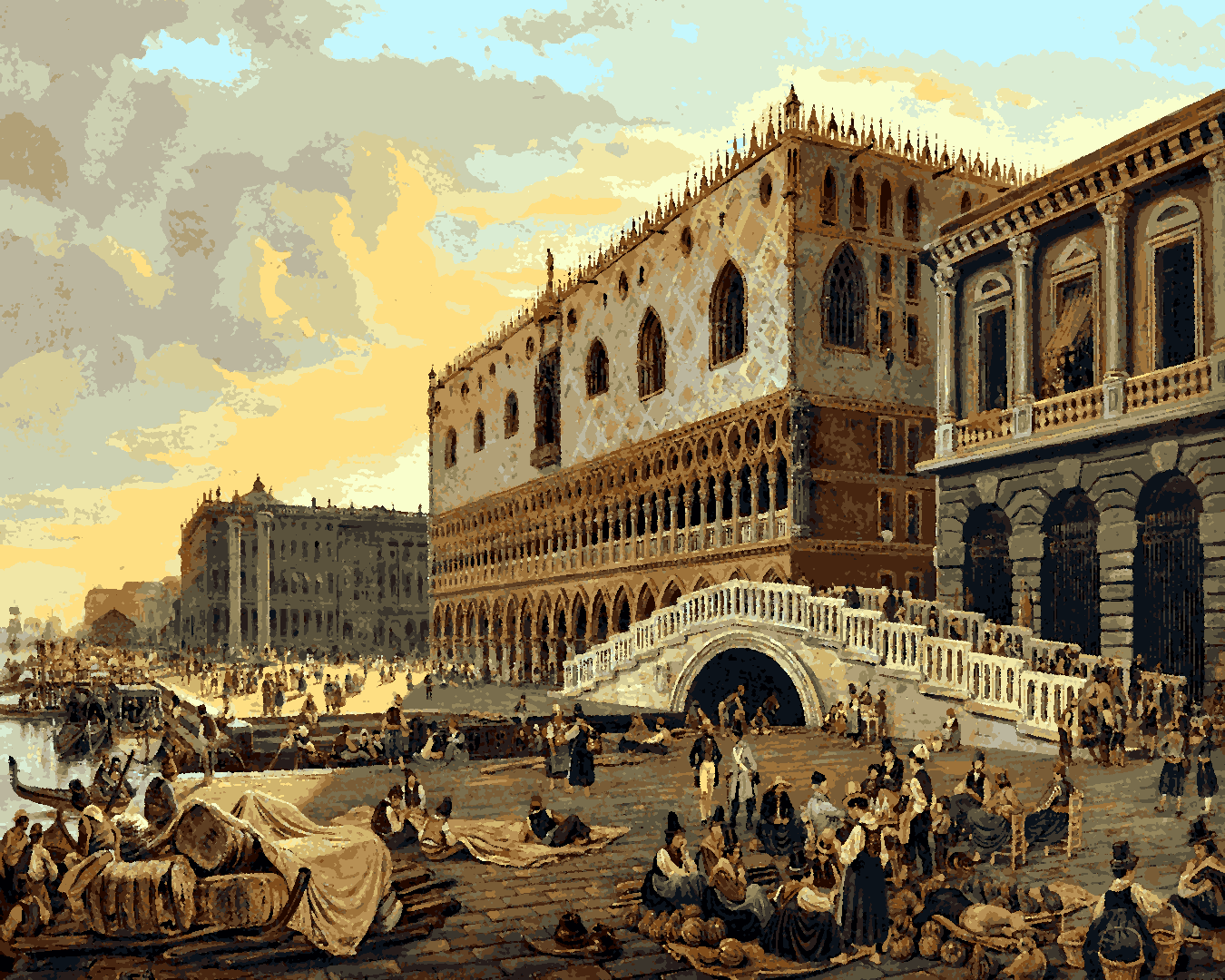 Venice, Italy Collection PD (4) - Ponte della Paglia & Doge’s Palace by Pieter van Loon - Van-Go Paint-By-Number Kit