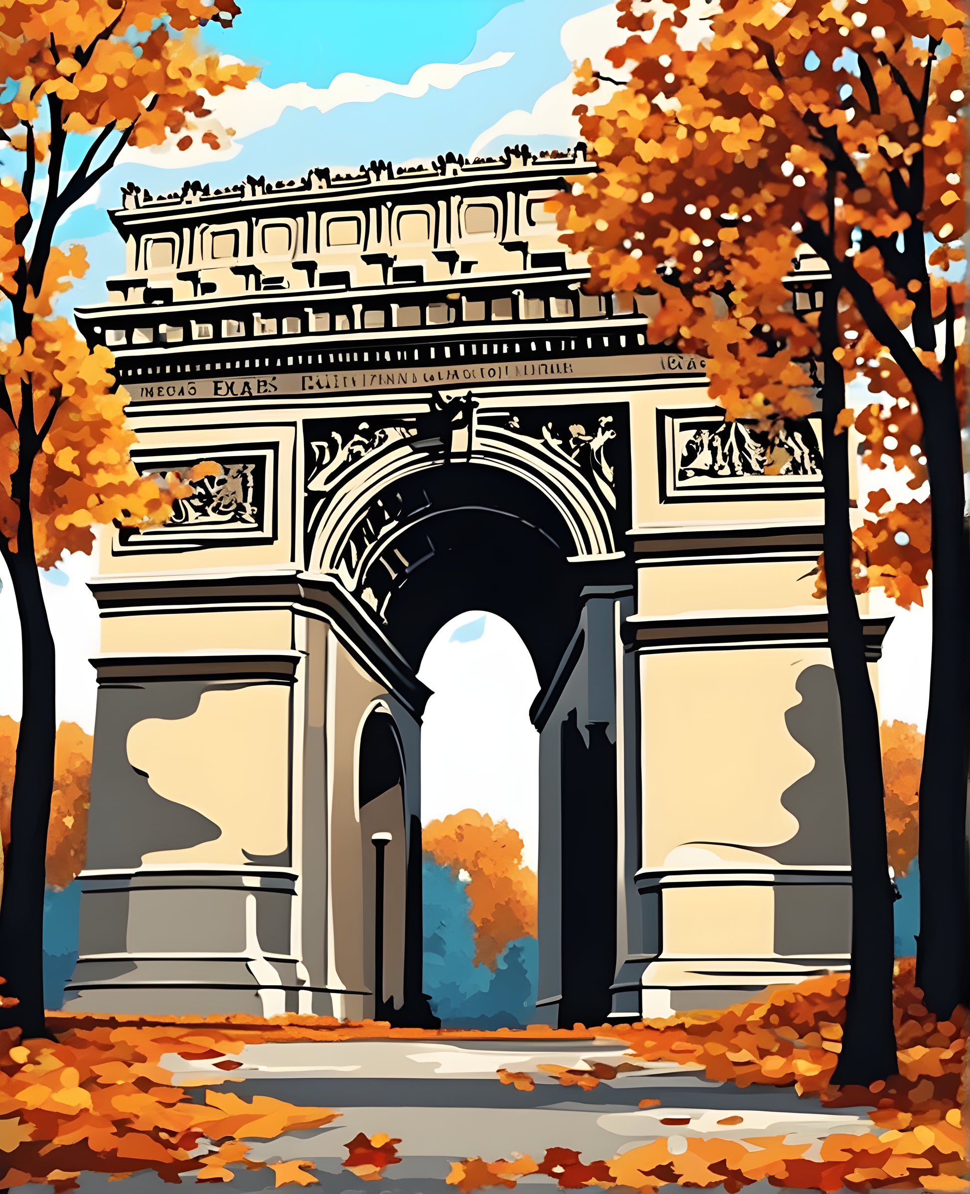 Vintage Autumn Arc de Triomphe, Paris - Van-Go Paint-By-Number Kit