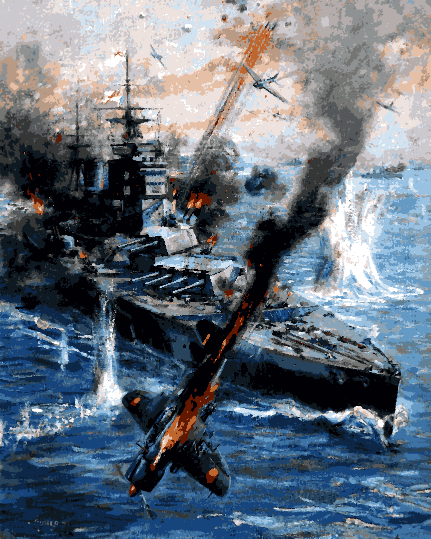 WW2 Collection PD (58) - HMS 'Prince of Wales' Under Attack by Japanese Aircraft - Van-Go Paint-By-Number Kit